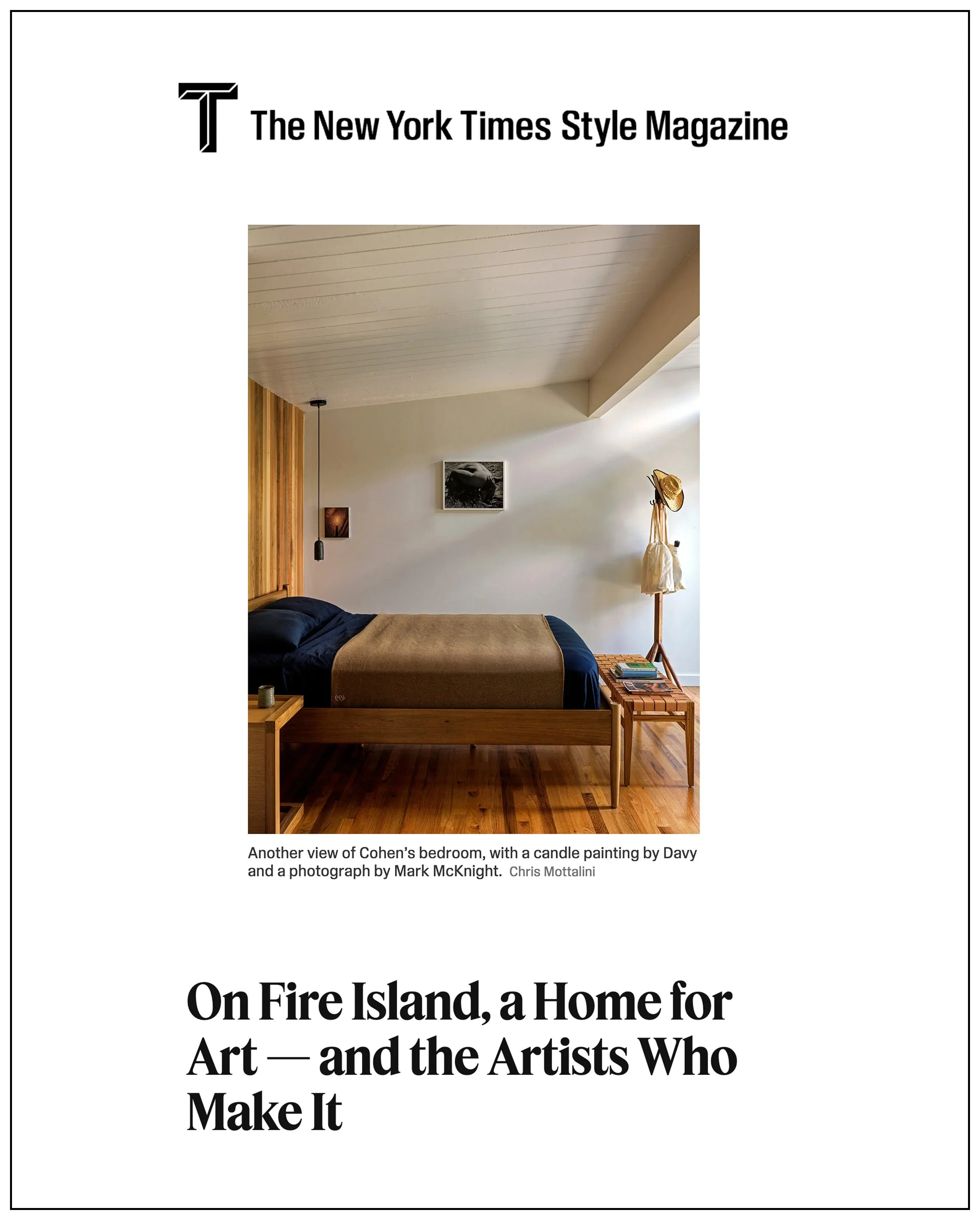 NY Times: On Fire Island, a Home for Art — and the Artists Who Make It, September 7, 2023 Read online, NYTimes Style Magazine Mark McKnightOctober 23, 2023 Facebook0 Twitter Tumblr